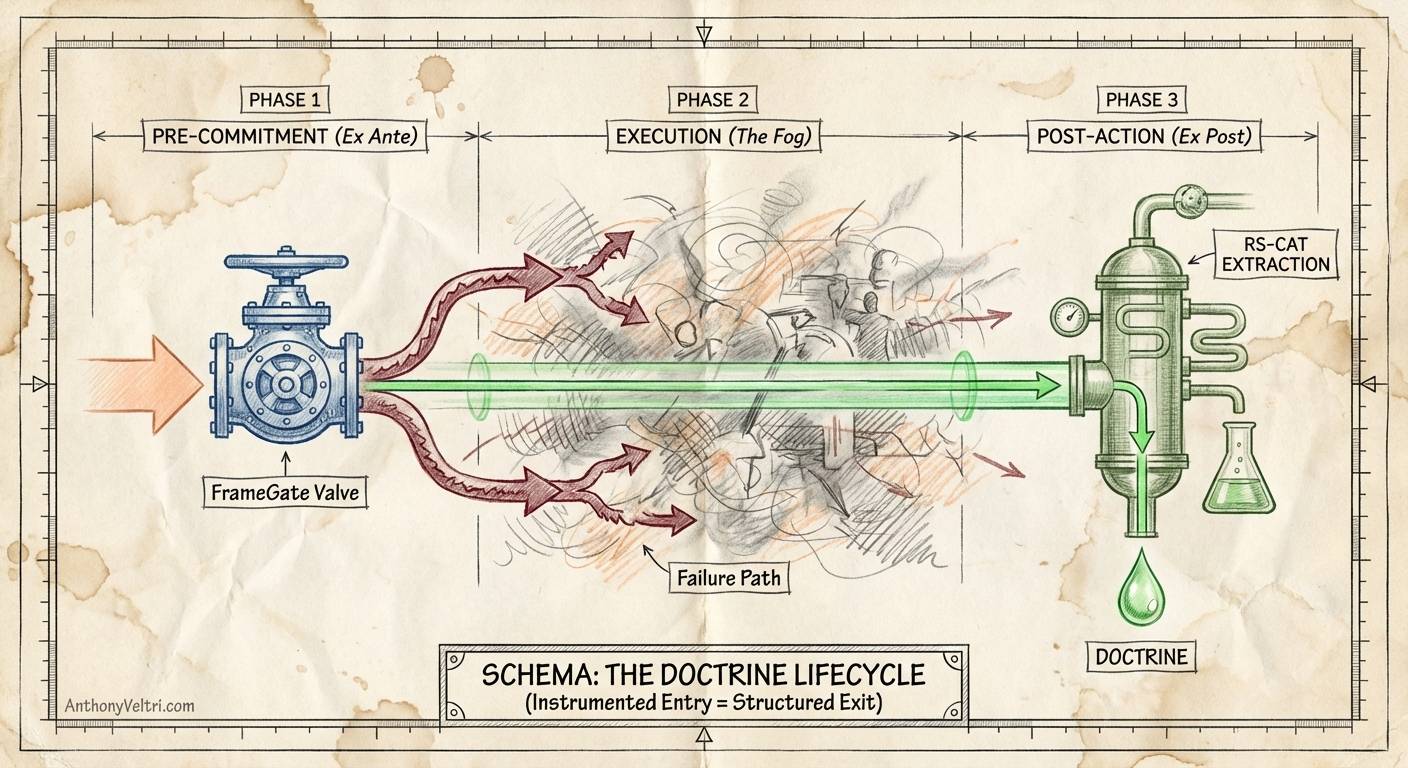 Without FrameGate: You complete a mission. You try to extract lessons learned. You can’t remember what you were optimizing for. You can’t remember who had authority to decide. You can’t remember whether you were supposed to be building a prototype or production infrastructure. RS-CAT has to reconstruct the frame from fragmented recall.