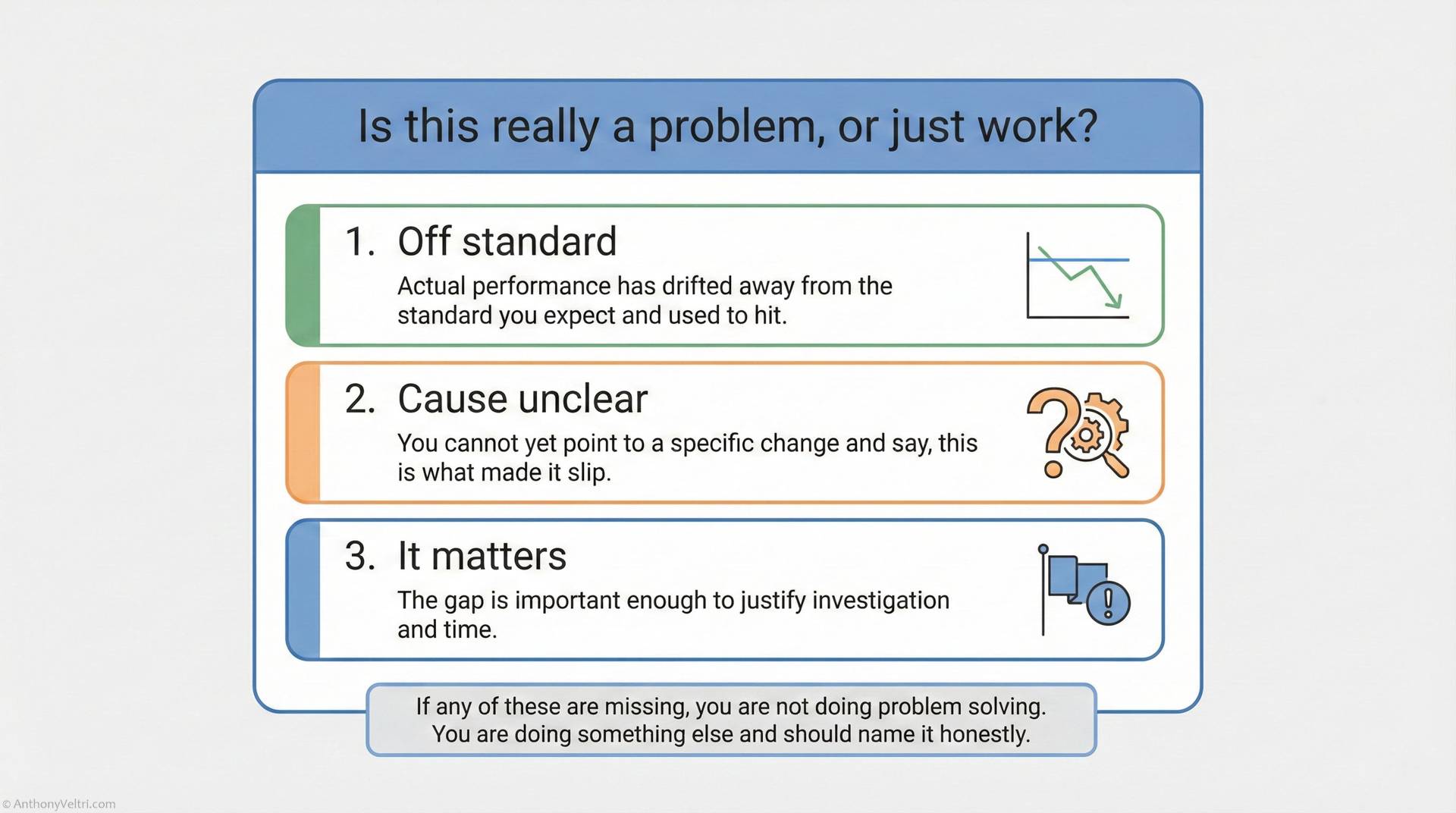 Problem solving begins with identifying the deviation.